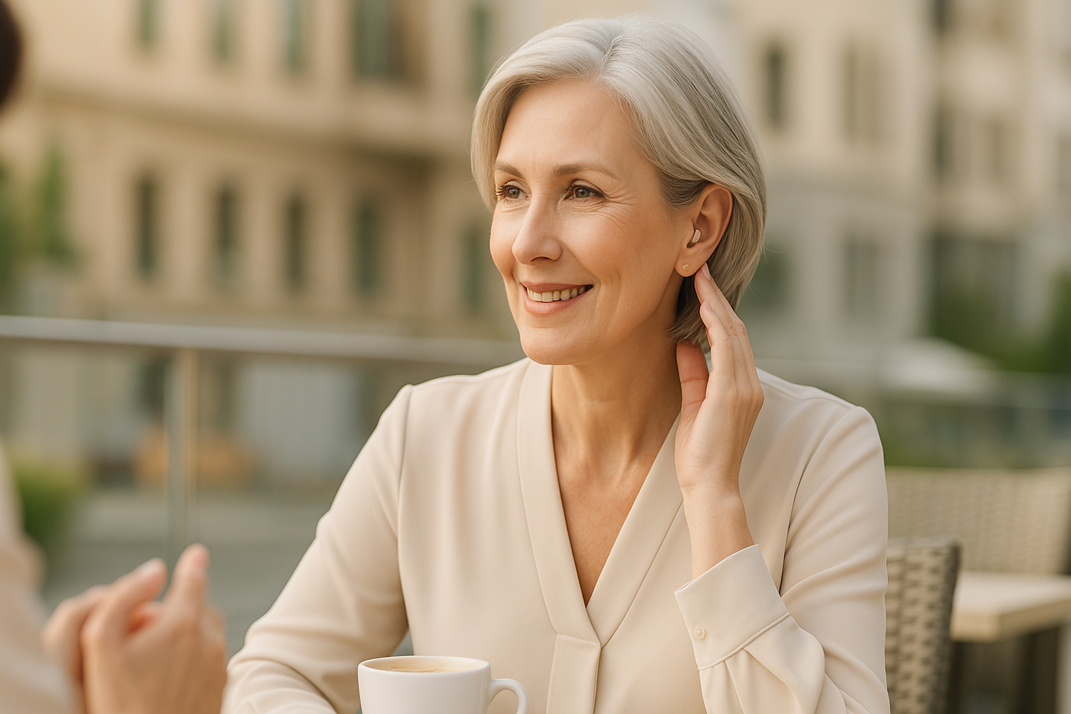 <<These hearing aids have completely changed my daily life. I can finally follow every conversation without asking people to repeat themselves. The wireless charging case is super convenient, and they stay charged all day long.>>
